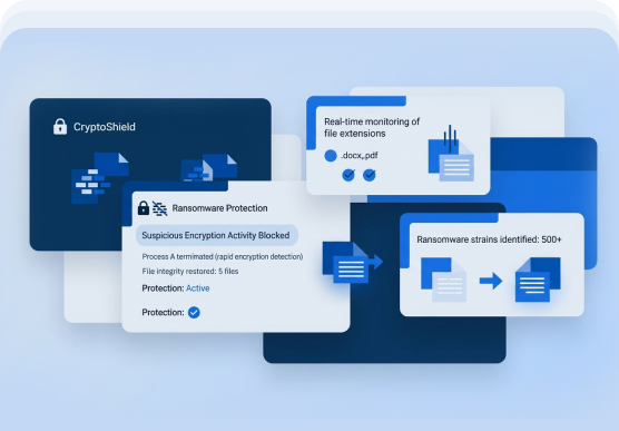 Identifies suspicious encryption activity and blocks ransomware before your files are locked.