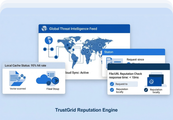 Uses global threat intelligence combined with fast local lookups for quicker protection and reduced system load.